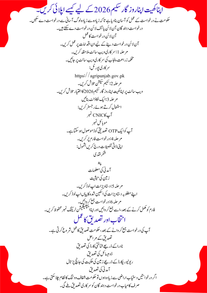 The Apna Khet Apna Rozgar Program 2026 is a valuable opportunity for landless farmers and unemployed rural citizens in Punjab. By providing agricultural land and farming support, the government aims to help families build a stable and independent livelihood.