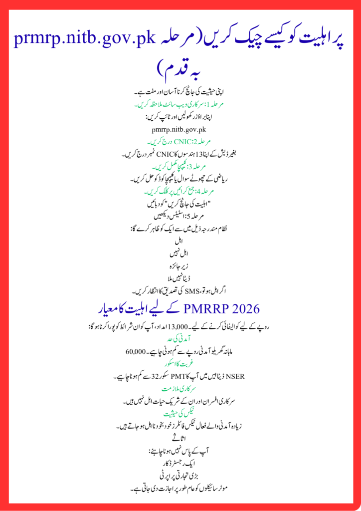 Eligibility Criteria for pmrrp.nitb.gov.pk PMRRP 2026
