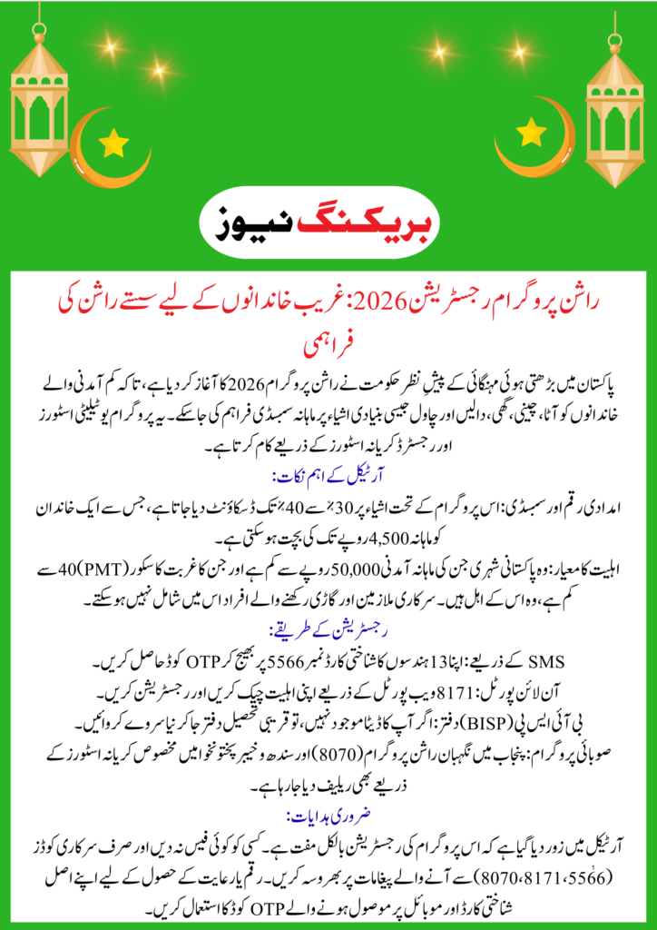 This detailed article covers everything you need to know about the 2026 Rashan Program — from eligibility and registration to benefits, checking your status, and safety tips. After reading this guide, you won’t need to search anywhere else for accurate and updated information.
